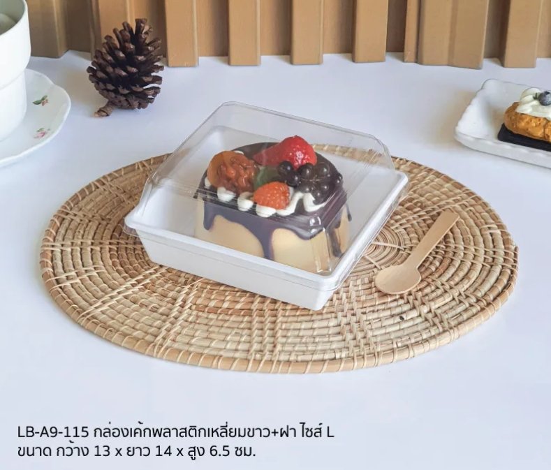 กล่องเค้กพลาสติกเหลี่ยมขาว+ฝา ไซส์ L